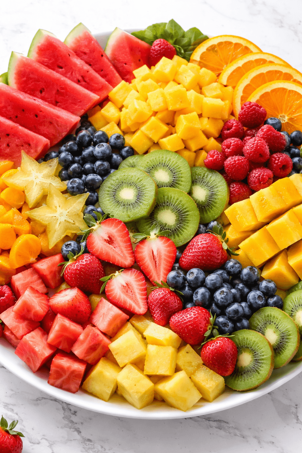 • קונטרסט: שלבו פירות בצבעים מנוגדים (למשל אדום-ירוק, צהוב-סגול) כדי לייצר ניגוד מרשים.